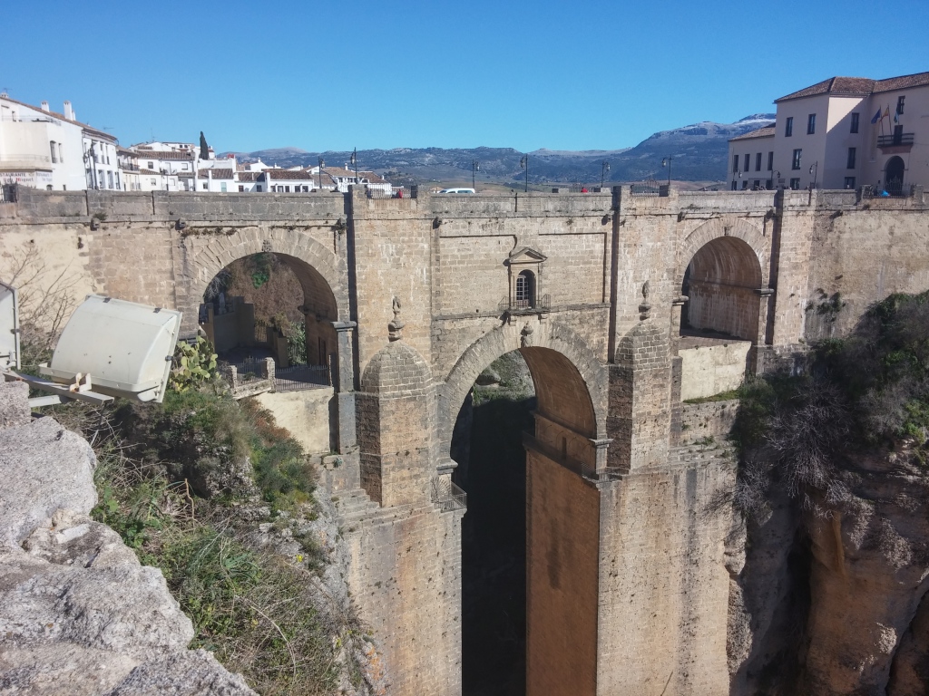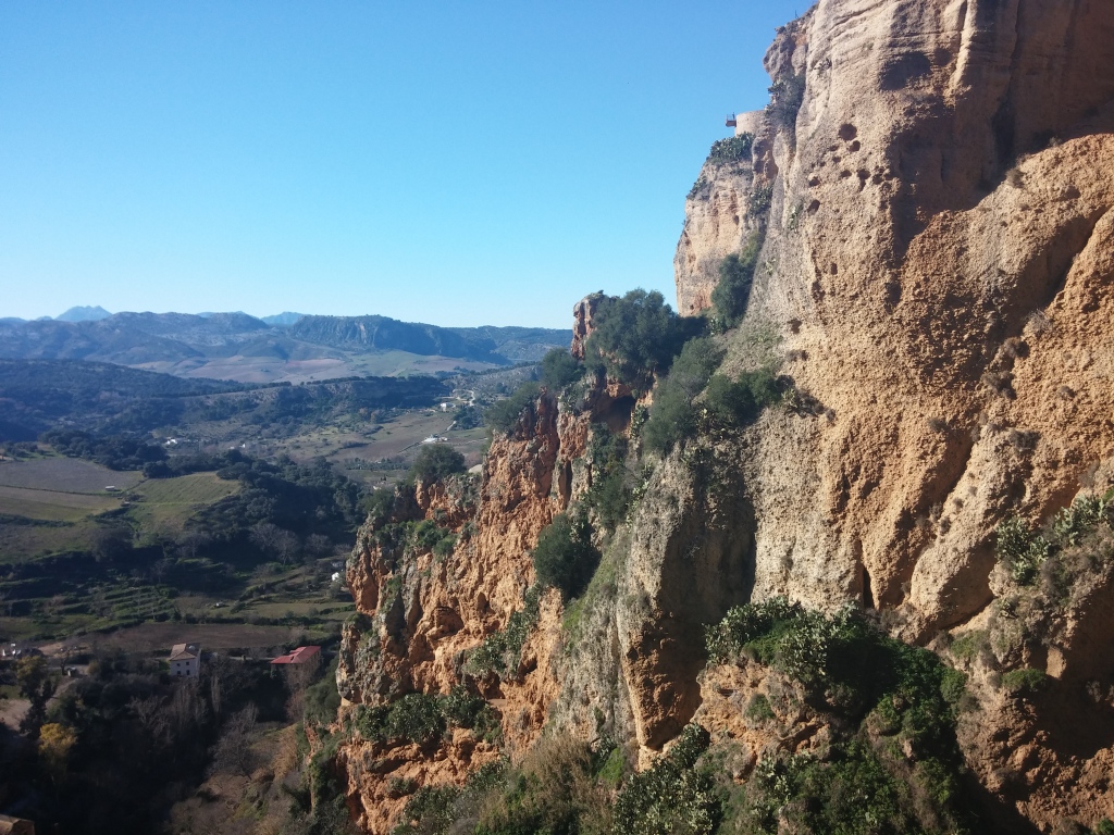 Hej niedawno byłem w Ronda. Więc korzystając z okazji wstawiam kilka fotek. Do Rondy można dojechać z Malagi autobusem oraz pociągiem. Koszt, to około 10 euro w jedną stronę. W obu przypadkach mamy zagwarantowane wspaniałe widoki. Pociągiem jedzie się przez El Chorro (Można tam wysiąść ale to miejsce na kolejny dzień zwiedzania więc lepiej zaplanować osobną podróż do tego miejsca). Ja wybrałem się samochodem. Jednak dla osób, które źle znoszą jazdę po serpentynach odradzam autobus. Droga jest wyzwaniem dla naszych jelit. Ja takich problemów nie mam więc 2 godziny jazdy po prostu szybko mi minęły. Podziwiając widoki nawet nie zdążyłem się nudzić. Kilka razy zatrzymując się i robiąc zdjęcia z punktów widokowych. Jeśli przeżyjecie tą trasę zapewniam Was, że gorszej nie znajdziecie nigdzie w Europie. Jak ci ludzie dojeżdżają do pracy? Bo zapewne tacy są...